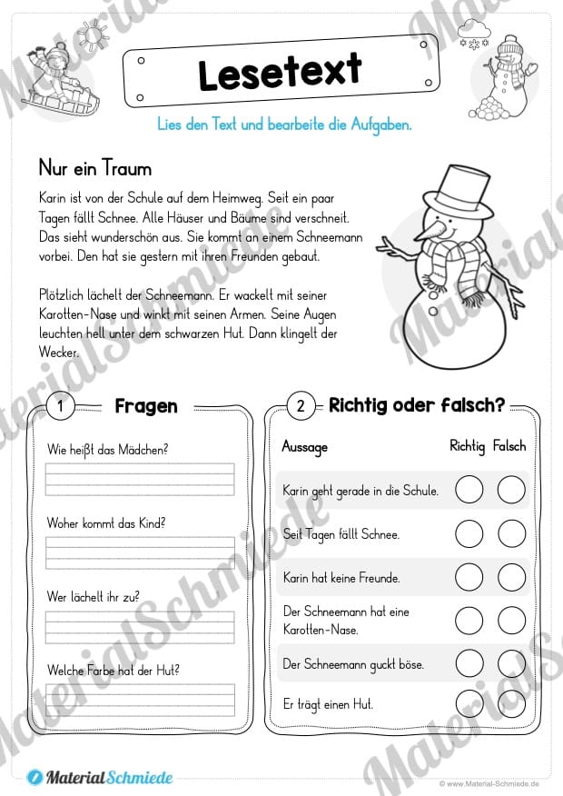 - Lesetext mit Fragen