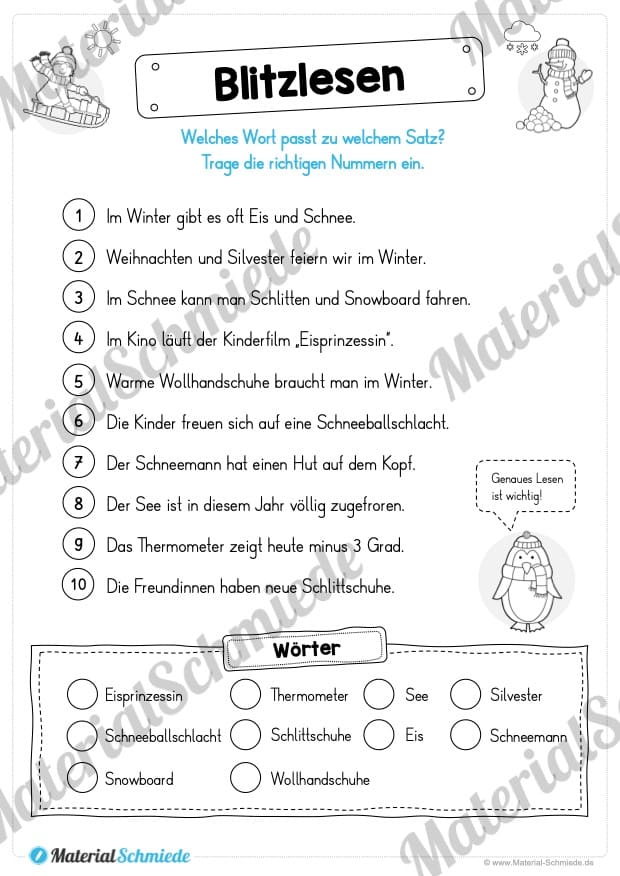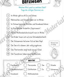 Viel Spaß mit den 10 verschiedenen Leseübungen passend zum Winter.