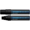 Lackmarker 750. Permanente, geruchsarme, lackartig deckende Tinte ohne Zusatz von Xylol Toluol, wasserfest, Hitzebeständig bis 400°. Rundspitze, Spitze austauschbar. Folienversiegelung. Laufbeschriftung enthält Piktogramme zur Anwendungserklärung für das Aktivieren der Lackmarker. Extrem Lichtbeständig. Stark deckend auch auf dunklen Oberflächen. Haftet auf glatten und porösen Oberflächen. Schaftmaterial: Aluminium. Schaftfarbe: weiß. Strichstärke: 2 – 4 mm. Schreibfarbe: blau.