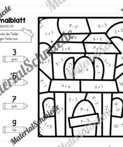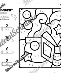 Die Aufgabe für die Schüler besteht darin, die Aufgaben im Zahlenraum bis 10 auf dem Bild zu lösen. Je nach Ergebnis, soll eine andere (vorgegebene) Farbe ausgemalt werden. So lernen die Schüler spielerisch Rechnen.