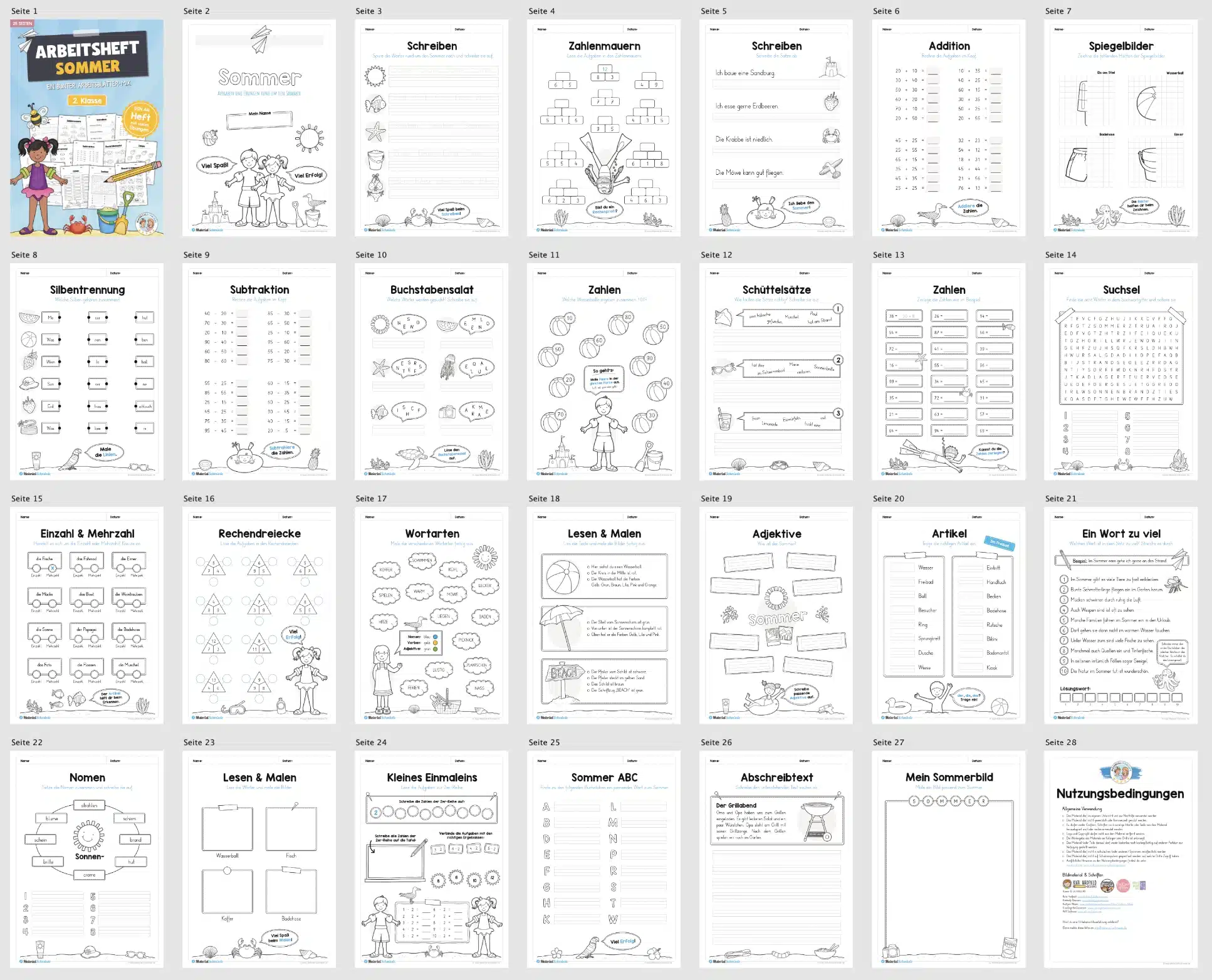 Hier findet ihr ein Arbeitsheft zum Thema Sommer für die 2. Klasse bestehend aus insgesamt 25 Seiten.