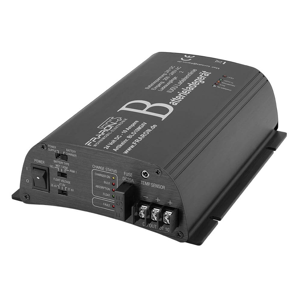 Dieses 24 Volt 10A Ladegerät von FraRon wurde speziell für die aktuellen Bedürfnisse im Bereich KFZ, Camping und Boot entwickelt. Mit seinen zwei Ladeausgängen ermöglicht es die gleichzeitige Aufladung von zwei separaten Batteriebänken, die beispielsweise aus Starter- und Verbraucherbatterien bestehen können. Selbstverständlich kann auch nur ein Ausgang verwendet werden, der dann die volle Ladefähigkeit bereitstellt.