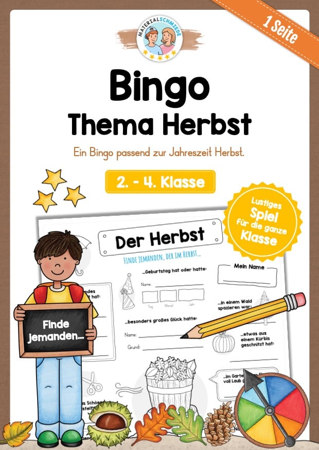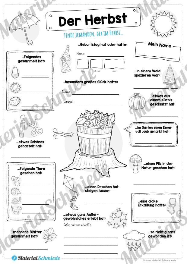 Auf diesem Arbeitsblatt findet ihr ein Bingo zum Thema Herbst. Die Schüler sollen jemanden finden, der etwas Bestimmtes im Herbst erlebt hat.