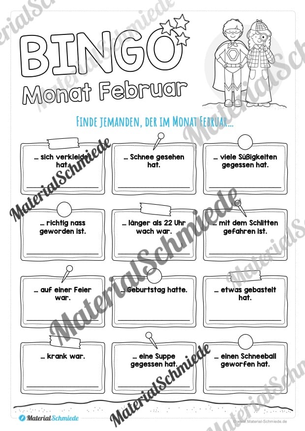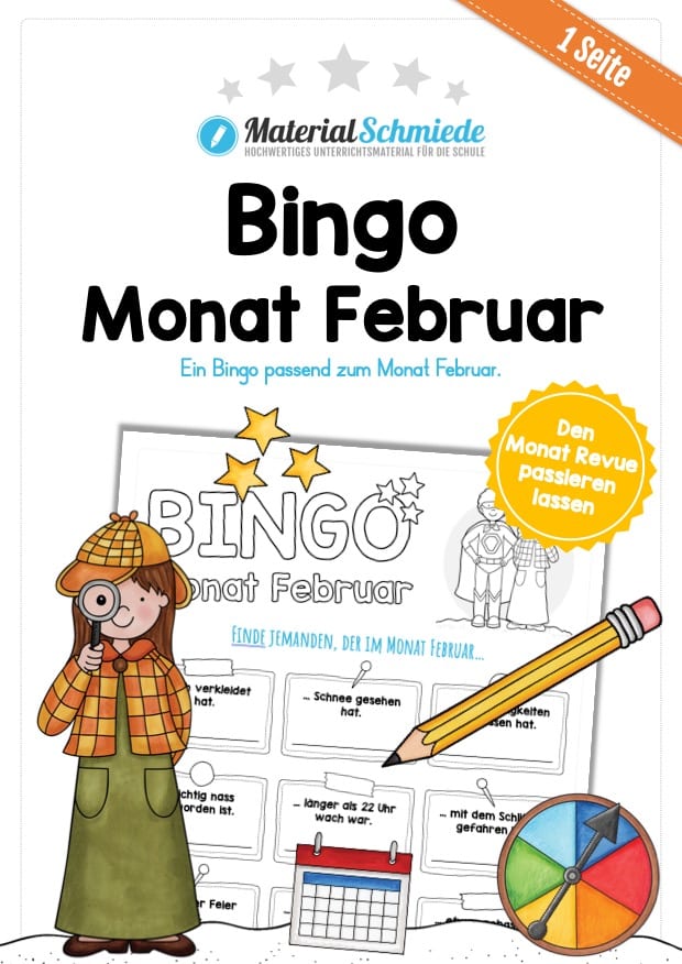 Die Schüler sollen jeweils jemanden in der Schulklasse finden, der im Monat Februar etwas Bestimmtes erlebt hat. Ist jemand gefunden, so soll der Name notiert werden.