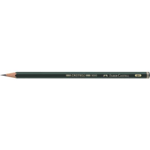 Bleistift Castell® 9000. Sechseckform, gespitzt. Schaftoberfläche: Schaft lackiert, Lackierung auf Wasserbasis. Höchste Qualität, bruchgeschützt durch Spezialverleimung, zum Schreiben, Zeichnen und Skizzieren. Härtegradkennzeichnung vorhanden. Länge: 175 mm. Schaftfarbe: dunkelgrün. Härtegrad: 6H.