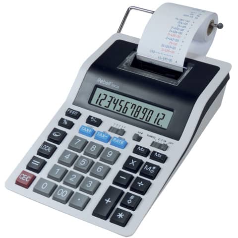 Handlicher druckender Rechner mit Batteriebetrieb – auch für unterwegs: 12-stelliges LC-Display. EURO-Umrechnungsfunktion. Steuer-Berechnung, Prozentrechnung, Profitberechnungen (Cost, Sell, Margin) und Rundungsautomatik (5/4) Zweifarb-Druck (2,0 Zeilen/s.). Farbband IR40T. Papierrolle BxØxHülse: 57x66x12mm. Batteriebetrieb oder optional Netzbetrieb mit Adapter (AD PDC). Batterien vier Mignonzellen (im Lieferumfang enthalten). Größe: 219 x 154 x 58 mm (B x H x T).