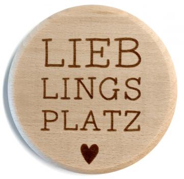 Glasdeckel aus Buche „LieblingsPlatz“ Größe ca. 10cm, Motiv graviert