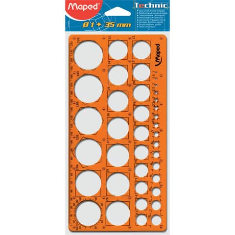 Kreisschablone, Kreise von 1 bis 35 mm, orange-transparent