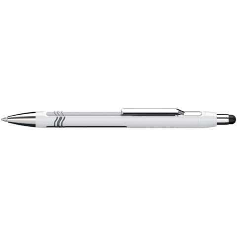 Touchpen für die Bedienung von Tablets und Smartphones. Das weiche Stylus-Käppchen ermöglicht ein präzises Navigieren auf allen kapazitiven Displays und vermeidet Fingerabdrücke. Funktioniert auch mit den meisten Handschuhen. Der Kugelschreiber vereint klassisches Design mit modernen Stilelementen. Für ein unverwechselbares Erscheinungsbild sorgen der teilweise versenkte Metallclip, sowie die farblich abgestimmten gummierten Streifen. Eine im Griffbereich als Interpretation des Firmenlogos umlaufende Dreifachlinie aus Weichkunststoff dient zusätzlich der Rutschfestigkeit. Auswechselbare Großraummine Slider 755 extrabreit (XB) mit Viscoglide®-Technologie für außergewöhnlich leichtes und gleitendes Schreiben. Schreibfarbe blau, dokumentenecht nach ISO 12757-2. Die verschleißfeste Edelstahlspitze garantiert, dass der große Pastenvorrat vollständig und schmierfrei genutzt werden kann. Der Epsilon hat einen federnden Metallclip und ist durch das clevere Plug+Play-System mit verschiedenen Minenformaten nachfüllbar.