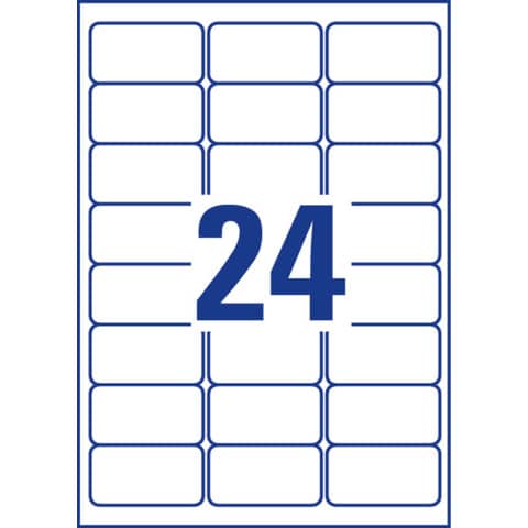 Wetterfeste-Etiketten 63,5×33,9 mm auf DIN A4 Bogen weiss 100 Blatt / 2400 Etiketten wasser- und wetterfest, öl- und schmutzbeständig abwaschbar, reißfest, UV-beständig temperaturbeständig von -20 °C bis +80 °C.