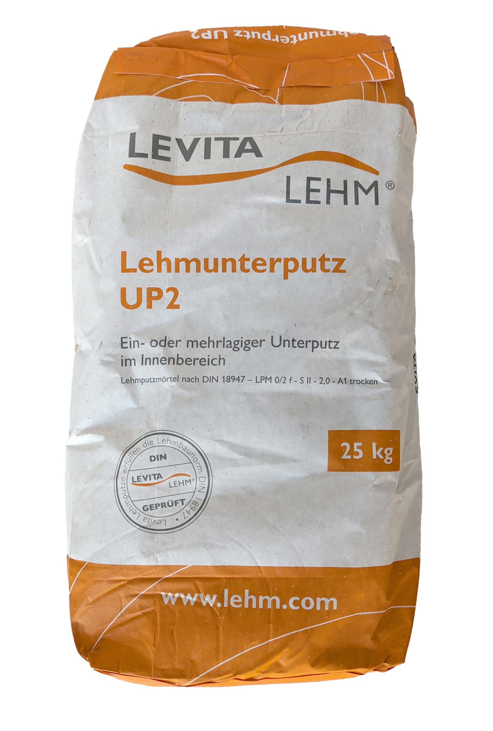 (Lehmputzmörtel nach DIN18947: LPM 0/2 f – S II – 2,0 – A1)