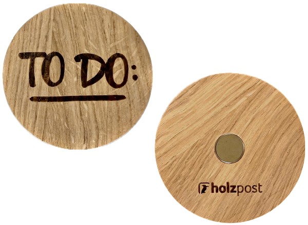 Magnet aus Eiche „To Do :“ d= 6cm, Motiv graviert