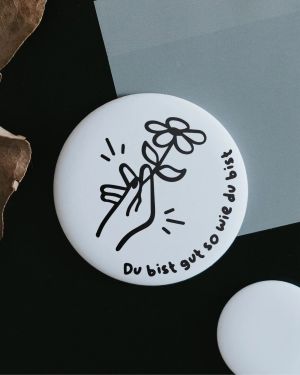 Größe: 56 mm Durchmesser Matt und samtweich Design: Spruch oder Illustration in Schwarz-Weiß Perfekt für den Kühlschrank oder die Pinnwand Magnet Du bist gut so wie du bist