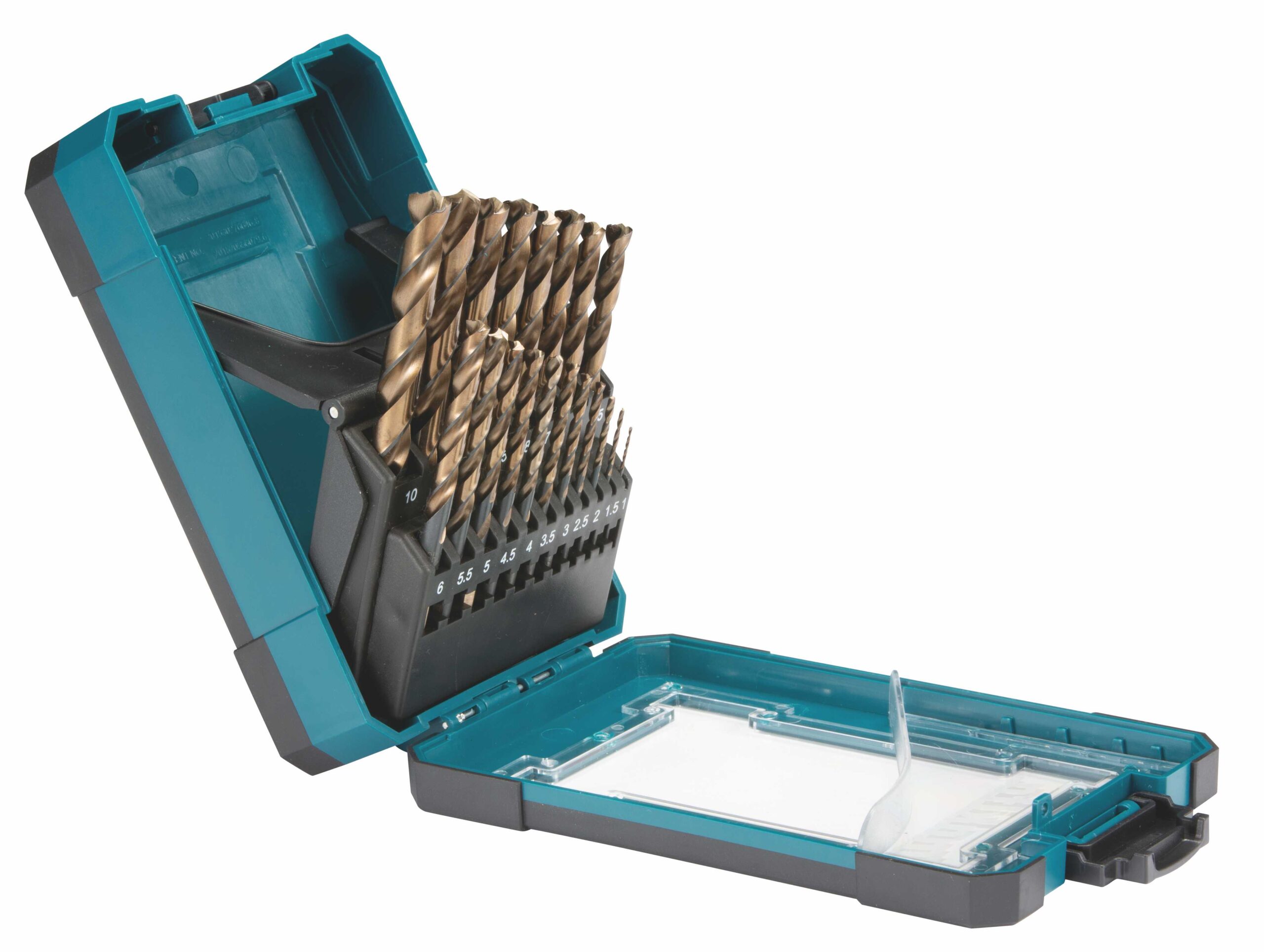 Die M-Force-Bohrer haben einen besonders schnellen und sauberen Bohrfortschritt durch die speziell entwickelte zweischneidige M-Force-Bohrspitze. Das Set beinhaltet 16 M-Force-Bohrer in den Größen 1, 1.5, 2, 2.5, 3, 3.5, 4, 4.5, 5, 5.5, 6, 6.5, 7, 7.5, 8, 8.5 mm sowie drei HSS-Bohrer in den Größen 9, 9.5, 10 mm.