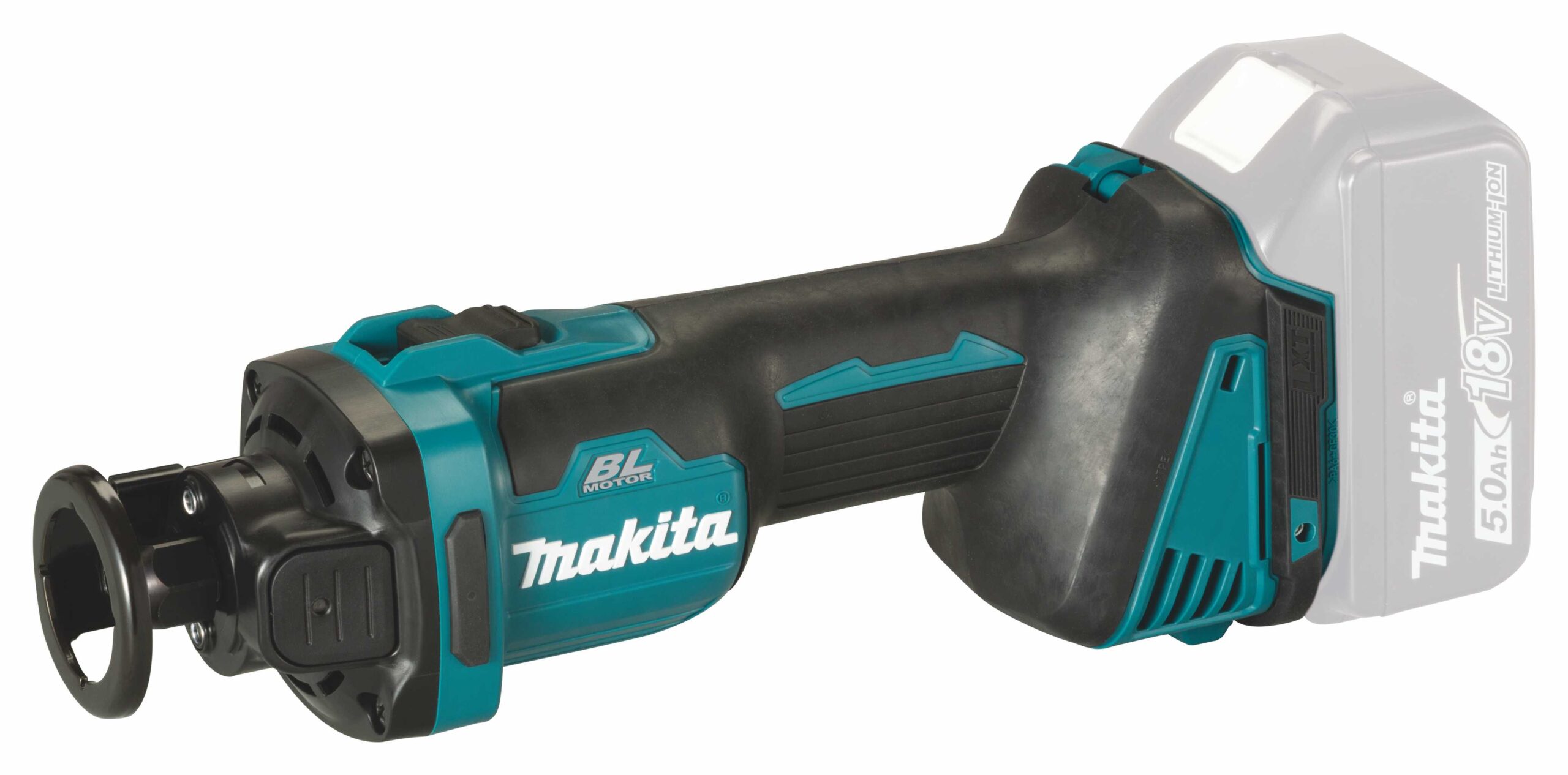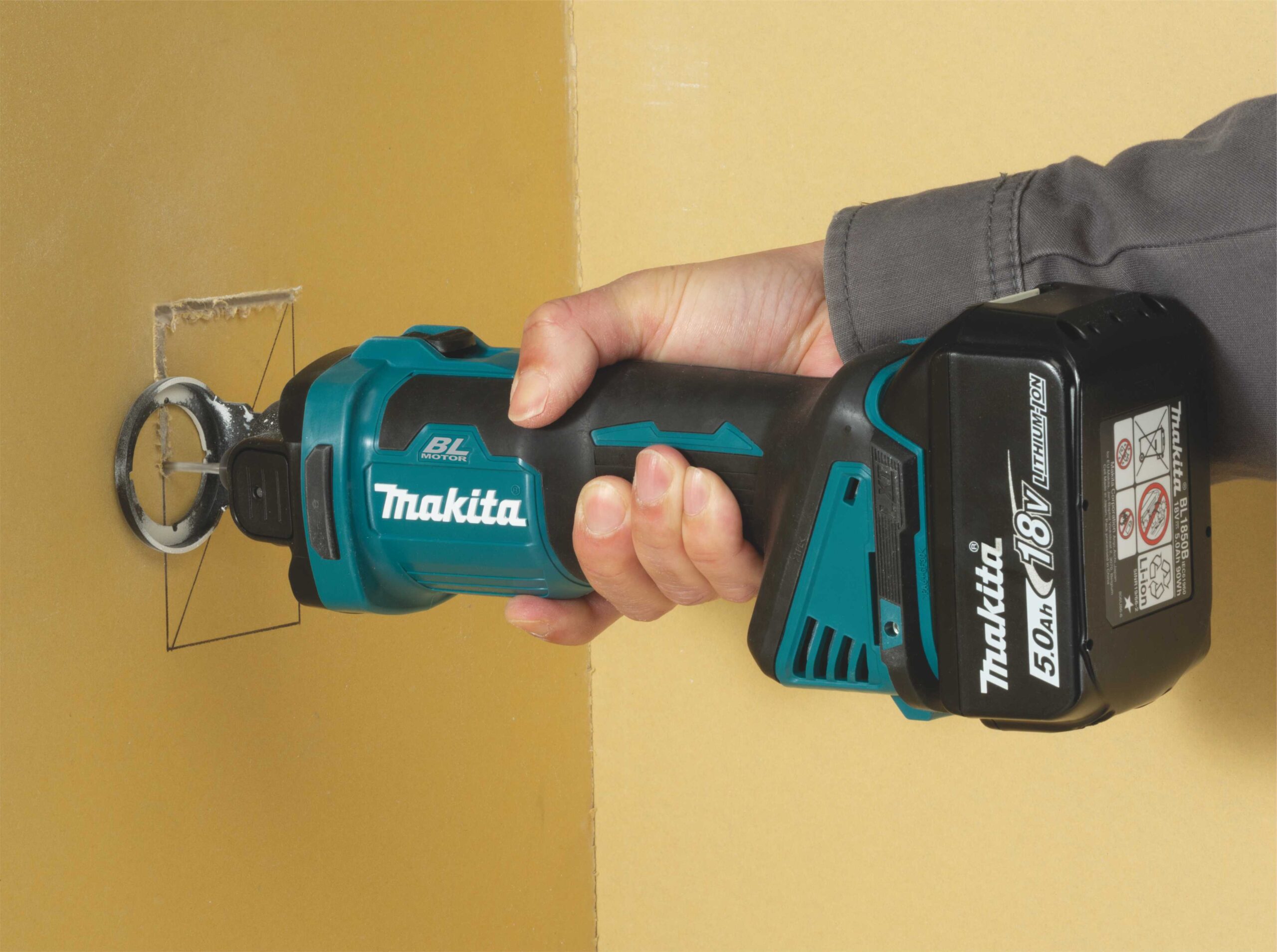 Handlicher Makita Rotationsschneider DCO181Z zum schnellen Einstellen von Ausschnitten für z. B. Elektroinstallation als Ergänzung zum vorhandenen 18V Li-ION Akkusystem