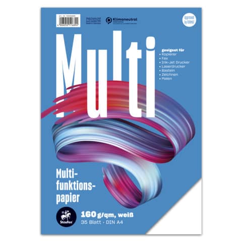 Multifunktionspapier 7X Colors. Holzfrei matt. Verwendung für Druck- oder Schreibgerät: für schwarz-weiß Ausdrucke und Farbausdrucke bis 1440 dpi, für Tintenstrahl- und Laserdrucker, Fotokopierer, Schreibmaschine, Telefax, Offset-Druck. Beidseitig bedruckbar. In wiederverschließbarer Packung. Papierformat: DIN A4. 160 g/qm. Farbe: weiß. Anzahl der Blätter je Packung: 35 Blatt.