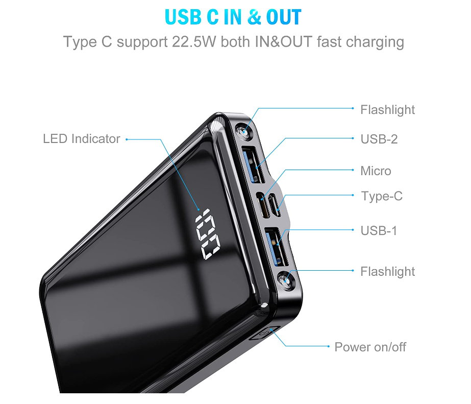 Die Abbildung ist eine Beispielabbildung, das Aussehen der Powerbank kann davon abweichen, die technischen Daten bleiben.