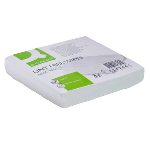 Reinigungstücher für Oberflächen, trocken, fusselfrei. Trockene Tücher für allgemeine Reinigung von großen Flächen im Büro und zu Hause wie Möbel, Schreib-, Planungs- Weiwandtafeln. Ideal für Reinigung von schweren Oberflächen oder für elektronische Geräte (Bildschirme, Tablet, Mobiltelefone, Tastaturen, etc.). Sie hinterlassen keine Rückstände auf Kleidungsstücke. Auch in Verwendung mit Flüssigreiniger verwendbar. Verhindert Kratzer, ist weich, sehr saugfähig und fusselfrei. Material: Cellulose und Polyester. Größe: 20 x 20 cm. Inhalt: 100 Stück