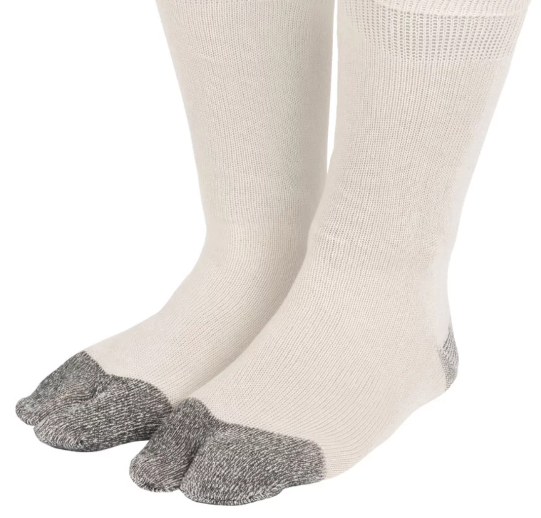 Man kann in den Jika-Tabi gut barfuß laufen. Aber mit Tabi-Socken ist es schon ein wenig wärmer und gemütlicher. Vor allem im sehr zeitigen Frühjahr und im Herbst sind Socken angezeigt. Zwischen der Erde im Beet und dem Fuß ist nur eine dünne, weiche Schicht Gummi. Sie wärmt nicht wirklich.