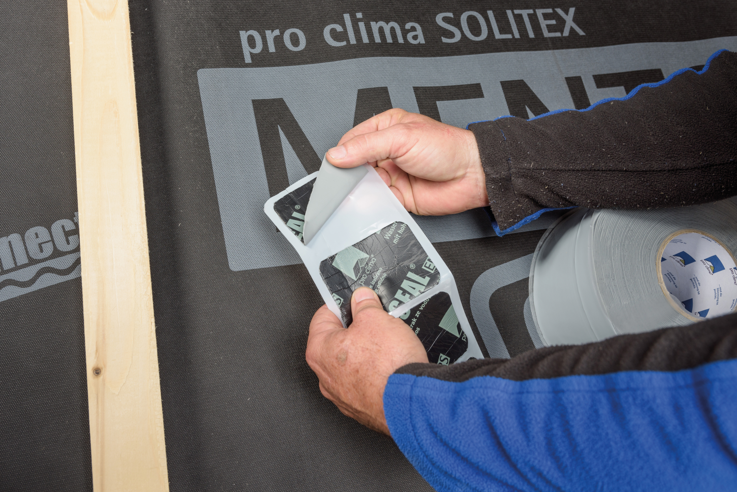 Einseitig klebendes Nageldichtungs-Klebepflaster unter der Konterlattung bei geneigten Dachkonstruktionen. TESCON NAIDECK mono patch ist für die Erstellung von Behelfsdeckungen im Sinne der Produktdatenblätter des ZVDH für Unterdeck- und Unterspannbahnen geeignet sowie als Zubehör für die Erstellung von Bauzeitabdichtungen nach SIA 232/1 zusammen mit Unterdachbahnen.