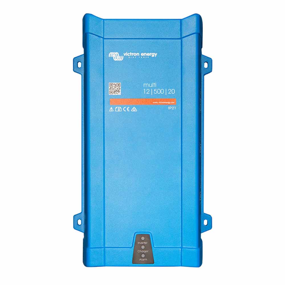 Der MultiPlus 12/500/20 von Victron Energy ist eine kleinere Version der erfolgreichen MultiPlus-Serie. Er hat eine Dauerleistung von 430 Watt bei 230 V und 50Hz und liefert eine reine Sinusspannung. Zusätzlich ist das Gerät mit einem Batterieladegerät mit einer Leistung von 20A und einem integrierten Transferschalter (Netzvorrangschaltung) mit einer Schaltleistung von 16A ausgestattet.