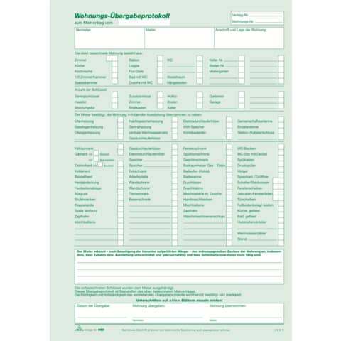 Wohnungs-Übergabeprotokoll – SD, 1 x 3 Blatt, DIN A4