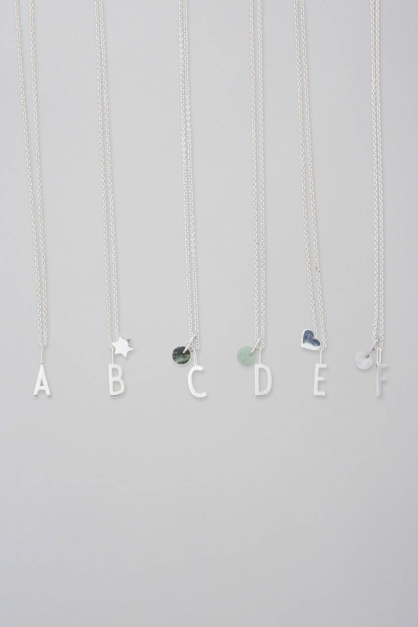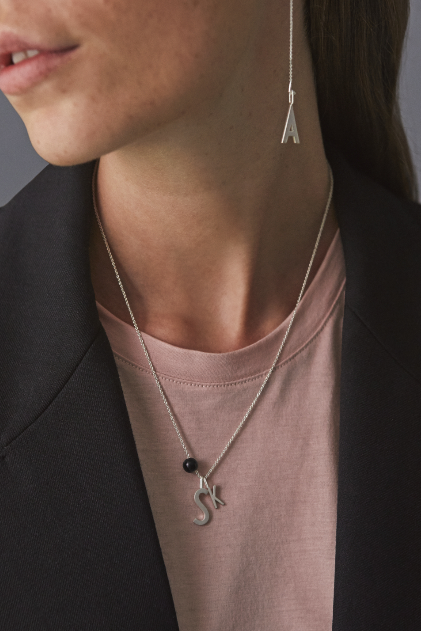 Verleihen Sie Ihrem Schmuck mit den zeitlosen Schmuckstücken von Design Letters eine persönliche Note. Die Buchstaben-Anhänger wurden ursprünglich 1937 vom weltberühmten dänischen Architekten Arne Jacobsen handgezeichnet. Das Alphabet wurde ursprünglich für das Rathaus in Aarhus, Dänemarks zweitgrößter Stadt, entworfen, wobei die Beschilderung im Rathaus von Aarhus bis heute dasselbe Buchstabendesign aufweist.