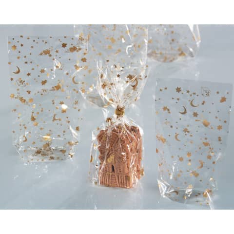 FOLIA Zellglasbeutel mit goldenem Weihnachtsdruck. Stück.